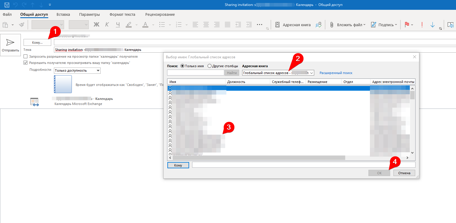 2. выберите почтовый ящик к календарю которого необходимо выдать доступ.