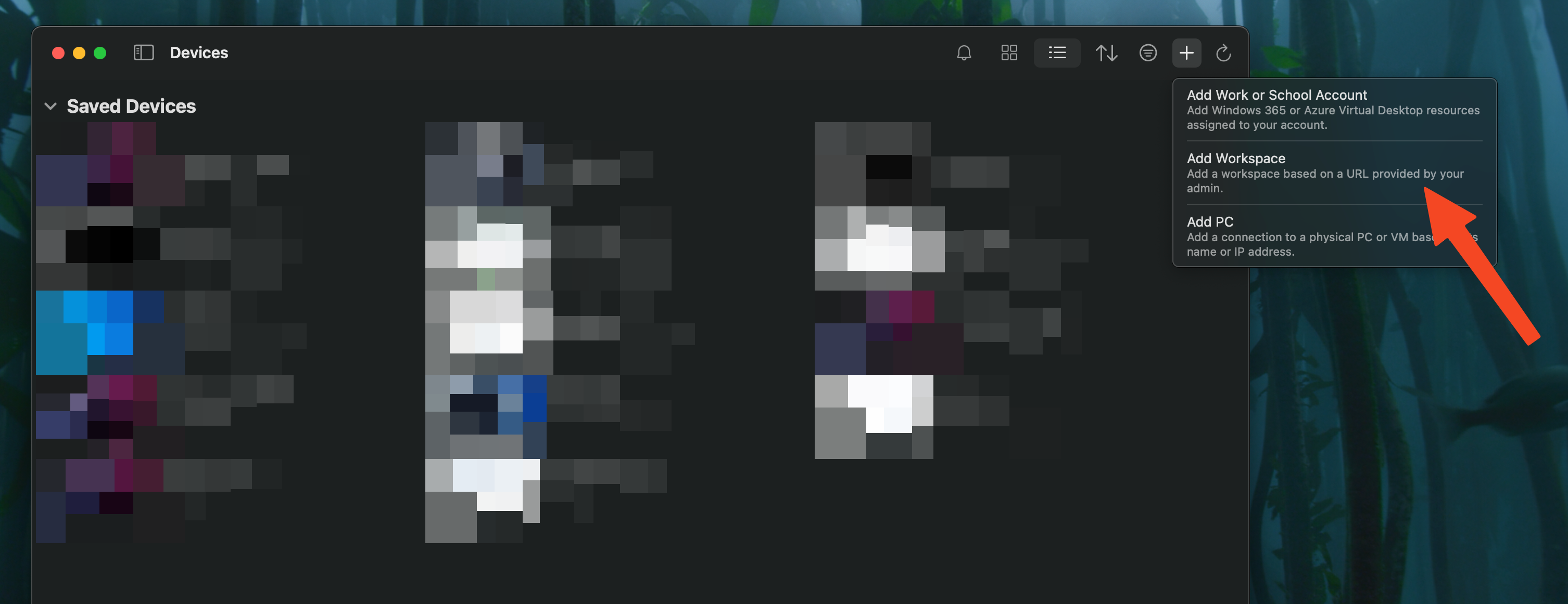 2. Добавьте новое соединение "+" → Workspace